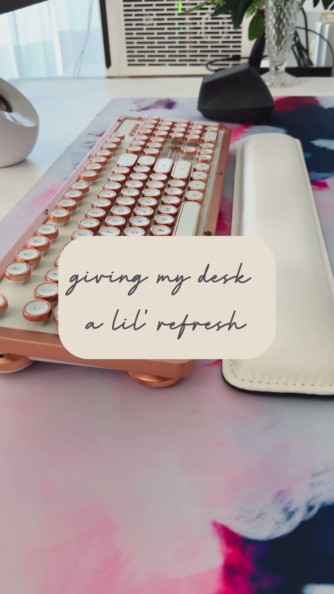 "The Amelie desk mat is a beautiful, full-coverage mat. It's thick and durable without feeling clunky. My mouse glides across it easily, so I don't need to double up with a mousepad. I love it and it gives my desk color and personality!"